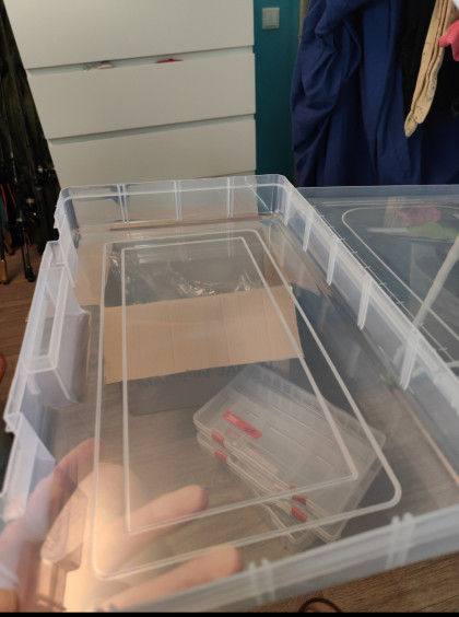 Gribēju, čoms nopirka, bet reāli nemaz tik daudz kastes nevajag, tā beigās paliku pie celtniecības skrūvju kastes (k-rautā nopērkamajām) un dziļo vannu, kur visu var ērti salikt, lai pēc copes viss ir vannās un bagāžnieks sauss! :)