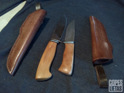 Lielam rokturis Goba, asmens- istrumentu tērauds- asmeņa garums 138 mm,roktura garums 140 mm, asmens biezums 3 mm,asmens platums 34 mm. Mazajam rokturis bērza māzeris,asmens -instrumentu tērauds- asmeņa garums 112 mm, roktura garums 112 mm, asmens biezums 4 mm, asmens platums 33 mm.