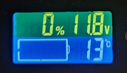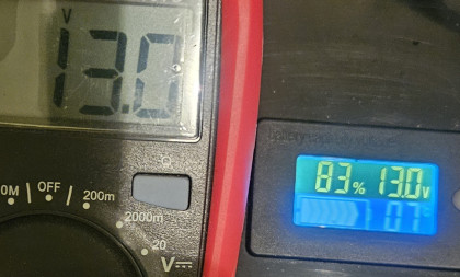 RaimisD [3.dec]: Bet ja BMS-am ir pateikts, ka kritiskā robeža bundžai ir 10,5 V (kas ir normāli LiFePO4 aķim), tad 13 V sanāk 78% — tas jau tuvāk ražotāja funktierim un displeja rādījumiem.
