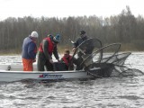 Sestdien, 22. aprīlī, Burtniekā ar īpašu murdu tā sauktās melioratīvās zvejas paraugdemonstrējumus veica somu zvejnieki, kuri apsaimnieko Puhijervi ezeru Somijā. Laivā kopā ar trim somiem bija arī "Vides risinājumu institūta" vadošais pētnieks Matīss Žagars.