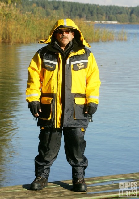 Kostīmu testētāji - Andis - viņam mugurā gandrīz tāds pats peldošais, elpojošais, tikai divdaļīgais SeaFox Crossflow. Un te vienmēr ir jautājums, - kādu labāk izvēlēties - viendaļīgo vai divdaļīgo... kurš labāks? Kurš drošāks? Kurš vairāk tur virs ūdens?