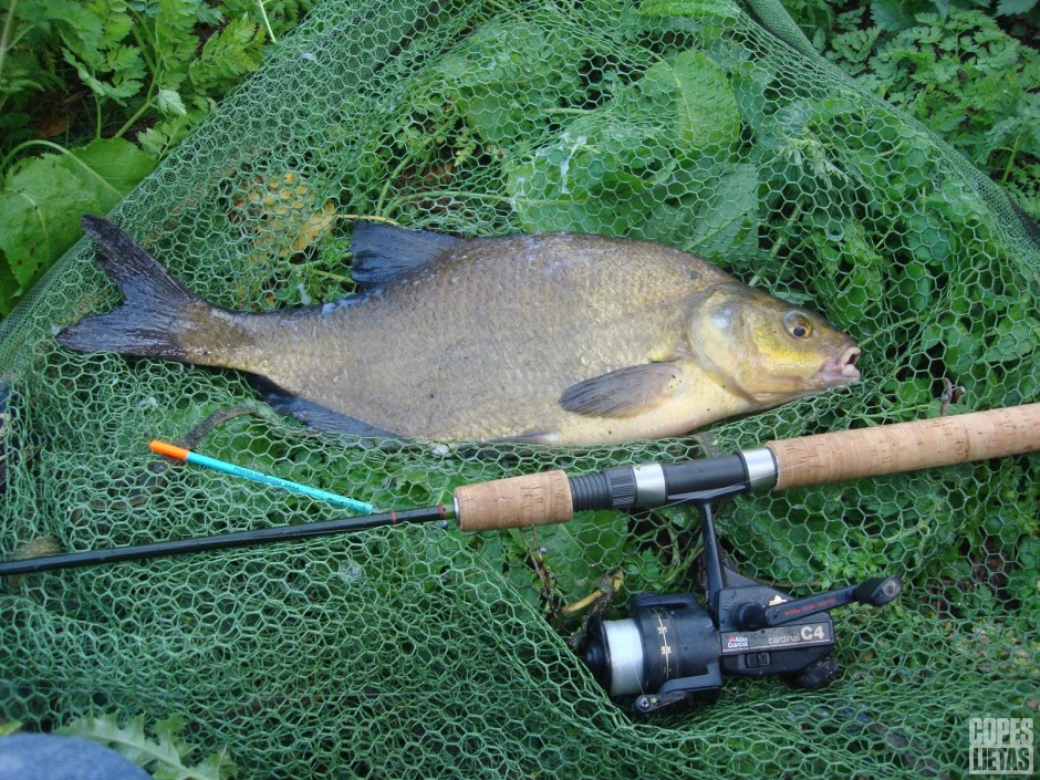 Līdzīgi jau kā daudziem šiet arī mani satracināja skaistās bildes ar līņiem no .... ezera,tapēc divas reizes dēvos un paliku uz nullēm! Tad nu sagatavojies rūpīgāk devos arī trešo reizi! Sākums likās veiksmīgs,kad varēju tikt vietā kur parasti sēdēja un vilka! Tad nu dēvos tur,sabaroju 3 vietas! Vakars un nakts atkal bezcerīga,likās,ka tiešām kaut ko neprotu vai nesaprotu! Tad ar gaismas parādīšanos,iznāca viens smuks plakanais,par ko vismaz nedaudz prieks! Pēc stundas arī pirmais līnis 38cm garumā! Vel viens puse norāvās! Tad jau tuliņ jabrauc,bet jau 40min uz vienu makšķeri nemitīgi rausta un tad slīd prom un gala velviens smuks Līnits uz 35cm! Nav izcila cope,bet man prieks