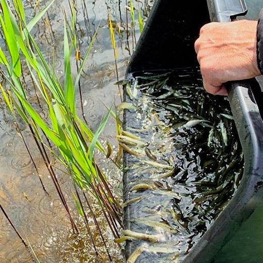 Zivju mazuļus uz Usmu atveda no SIA “Rūjas zivju audzētavas”.