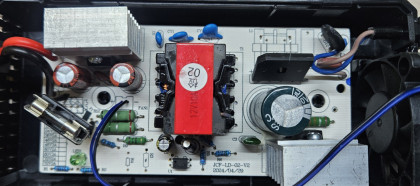 Bildē 3-kājis izskatās pēc LM7812. Nav redzams ne opamps, ne PWM regulators. Lēta kastīte :)
