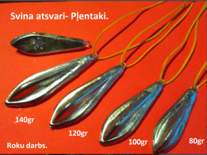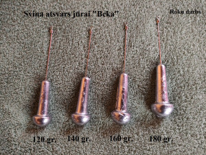 Deviņu savādāku formu un svaru svina atsvari gruntsmakšķerēšanai ,piejamie svari uz foto" Pļentaki''-80;100;120 ;140 ;180;200 gr. Cena +o, 20centi pie svara. Svina atsvari gruntsmakšķerēšanai-' 'Piramīdas''-85;115;1 3 5;18 5gr. Cena+o, 15eur pie svara. Svina atsvars jūrai ''Jūrnieks''-140;160; 180g r. Cena +o, 20eur. pie svara. Svina atsvars jūrai ar ragiem ''Enkurs''-85;100;120 gr. Cena=2eur. gab. Svina atsvars ar ļoti labu noturību jūrā, straumē-''Zvaigzne''- 120; 130;140;150gr. Cena +o, 20eur pie svara. Svina atsvari Big-Olives-40;50;60;7 0;80gr. Cena +5centi pie svara. Svina atsvars ''Bulta''-90;100;120g r. cena +0, 20eur. pie svara. Svina atsvars Cilpa -110;130;150;170gr.Svina atsvars ''Beka''-120;140;160; 180g r. cena +0, 20eur pie svara. (120gr+o, 20=1, 40eur) Iepriekš vienu dienu pasūtot nopirkt var Jelgavā, ja tālāk var nosūtīt. Katram pircējam obligāts bonusiņš.