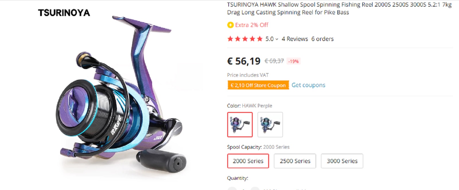 Jauna spole Tsurinoya Hawk 2000S. b. b. 6+1;g. r. -5.2.1;drag-7kg; weigt-245gr. Spole ar seklo kaseti , nebūs jātin bekinga aukla, piemērota pludiņmakšķerei ,mikrodžigam, vieglajam spiningam. Var nosūtīt ar omniva vai pa pastu.