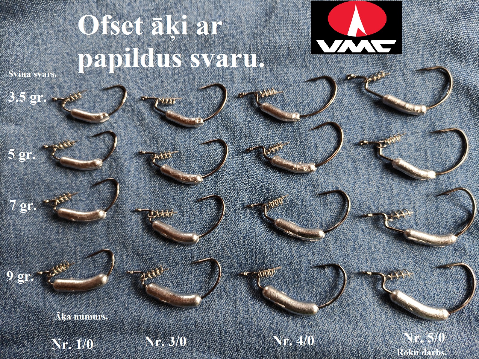 Ofsetāķis ar papildus svina atsvaru, pieejamie āķa izmēri:Nr. 1/0;nr. 3/0;nr. 4/0;nr. 5/0, svina svars:3, 5gr;5gr. ;7gr. 9gr. Arīkots ar māneklī ieskrūvējamu atsperīti. Cena visiem viena o, 60eur. gab. Pasūtīt dienu iepriekš un nopirkt var Jelgavā var nosūtīt.