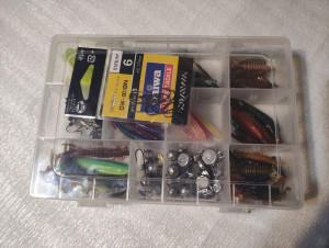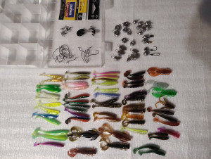 Sākuma komplekts mikrodžigam, asariem. Komplektā - 60+ gumijas, 25 āķi džiga , ofseta, 23 ausaiņi , trīs veidu 2-8gr. karabīnes virpuļi, stopari, kaste. nopirkt var Jelgavā, var nosūtīt.