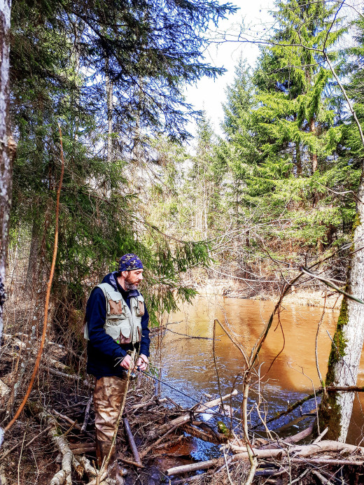 Kā jau minēju sākumā, šogad, nesagaidot savas indikatorpuķītes – zilās meža vizbulītes, sezonas sākumu vairs atlikt vienkārši nebija manos spēkos. Vajadzēja vien izvēlēties upīti, un uz priekšu. Tomēr šis ir viens no būtiskākajiem jautājumiem, jo upītes ir ļoti dažādas. Citas ir akmeņainākas, kur duļķis neveidojas tik liels kā smilšainas gultnes gadījumā, citas vairāk tek pa mežiem, kur sniegs un ledus tik ātri nenokūst, citas vairāk pa pļavām. Vēl ir izteiktas pavasara upītes vai to posmi, kur uz lomu var cerēt tikai sezonas sākumā.