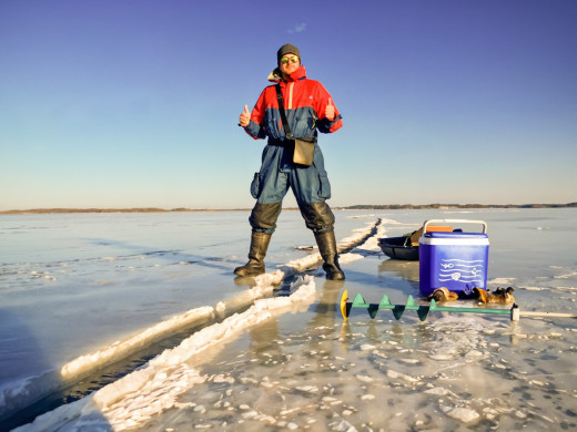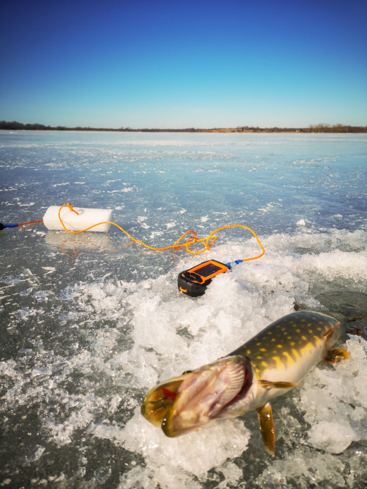Tā, vieta atrasta, un pa perimetru sataisīti 15–20 āliņģi. Ķeršanas dziļums – no 6 līdz 11 metriem. Urbja diametrs – 130 mm. Tas ir minimums, lai zivi līdz 5 kilogramiem spētu izvadīt bez problēmām. Jāņem vērā, ka lielā ezerā bieži vien kilometrs, pusotrs no punkta līdz punktam ir normāls attālums. Un pa vidu nebūs nedz čomu, nedz citu makšķernieku. Ja būsi viens bez vergas – ko sauksi palīgā?