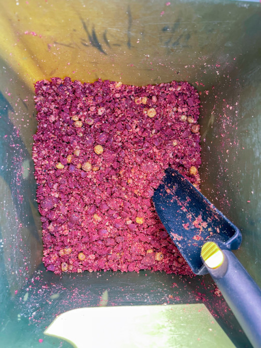 Līdz ar to karpiniekam, kas no savas ēsmas vēlas sasniegt maksimālo efektu, nekas cits neatliek kā ķerties pie jaukšanas pašam. Vien piebildīšu no prakses, ka mazās devās pievienojamās birstošās sastāvdaļas ir jājauc klāt pie mīklas šķidrās daļas (parasti olām). Tur tās izšķīdina un tikai pēc tam pieber bāzes miksu.