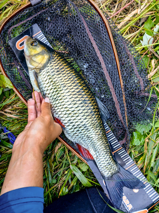 Uzsmeļot zivi, pirmajā brīdī pat ievelku elpu – liela... Tā tobrīd ir vienīgā doma. Ticis līdz krastam, sapals vairākas reizes cenšas tikt ārā no uztveramā. No vestes izņemu mērlenti, ātri uzlieku zivi, un tur rāda stabilus 58 cm! Jauda, spēks!