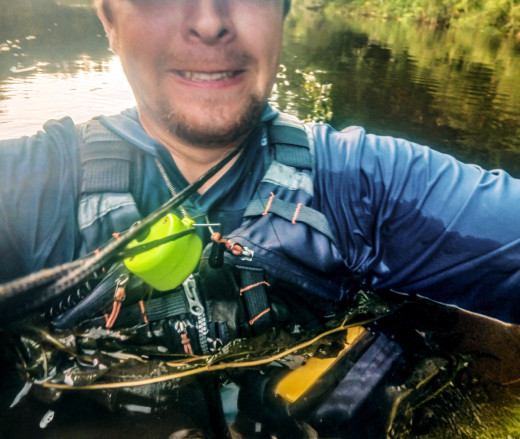 Nonācis galapunktā, pa mežu dodos nedaudz pa straumi uz leju un tad sāku brist. Te upe ir krietni savādāka – dzidrāka, smilšaināka, šaurāka, seklāka un koku pārkarēm bagātāka. Sapalu te arī vieglāk lokalizēt, un sanāk izvilkt arī pa kādam treknākam rupucim. Te pavadu 4 stundas. Cope ir tīri laba, un varētu turpināt brist, taču... kaut kas neliek mierā. Pieredze-intuīcija-aizdomas liek atgriezties upes lejas daļā. Vakardienas vidējais izmērs tomēr bija diezgan labs.
